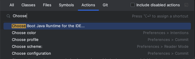 다시 Help -> Find Action -> "Choose"입력하고 "Choose Boot Java Runtime IDE.." 선택